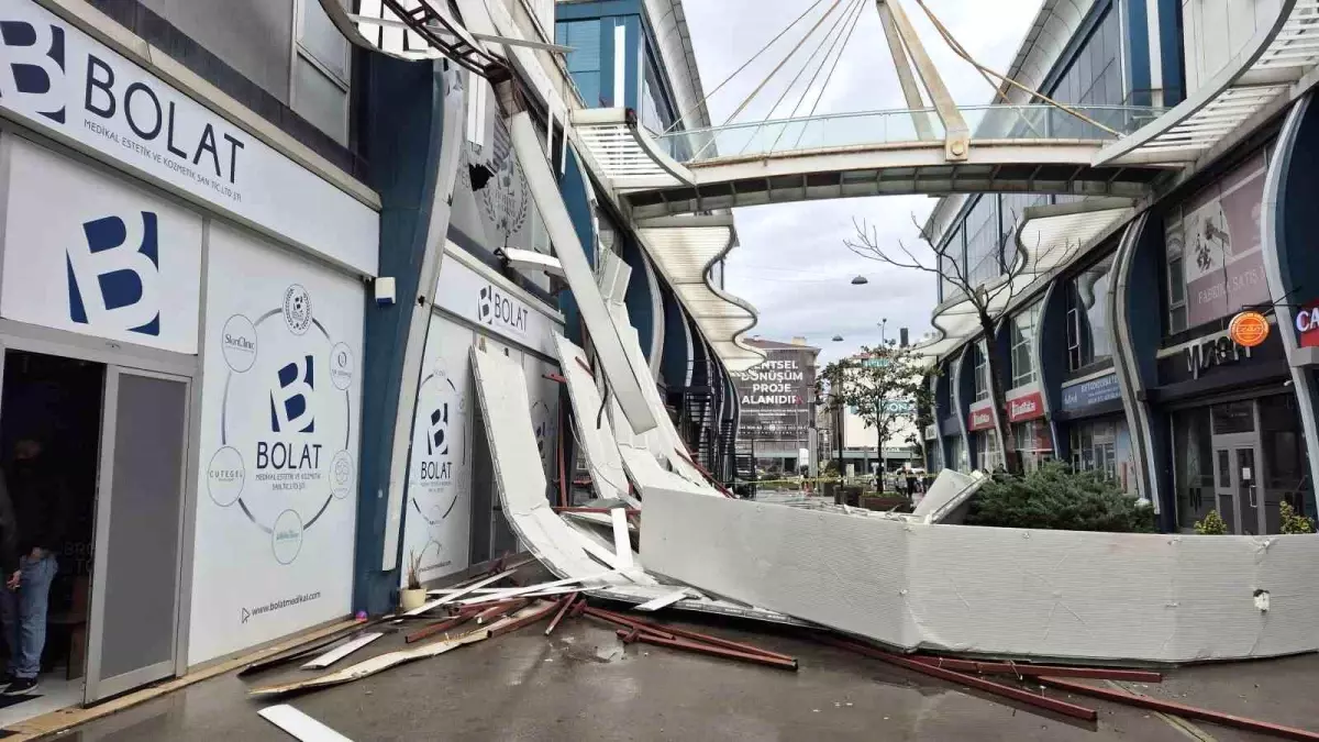 İstanbul Avcılar’da şiddetli fırtınada uçan çatı parçaları, çevredeki iş yerlerinde hasara yol açtı.